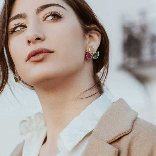 Pendientes Callao Ed. Limitada Plata Verde, Fucsia y Morado