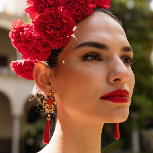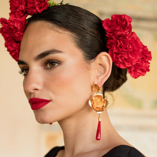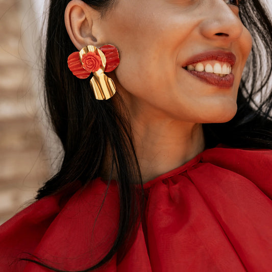 Pendientes Cadenza Flor Flecos Rojo (desmontables)