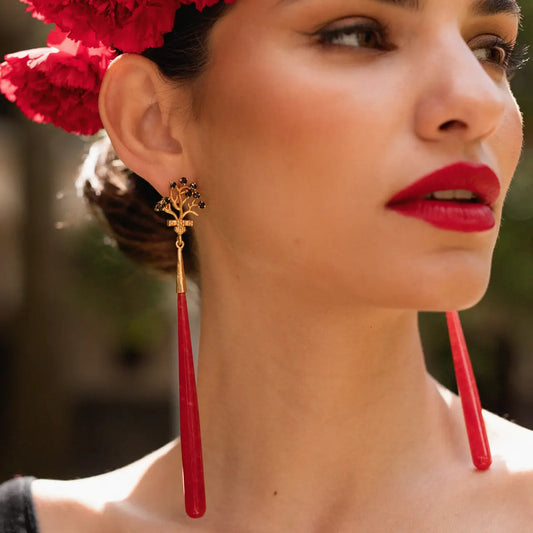 Pendientes Rosalín Desmontable Rojo y Perlas