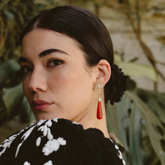 Pendientes Trópico Ed. Limitada Plata Blanco y Rojo caldera