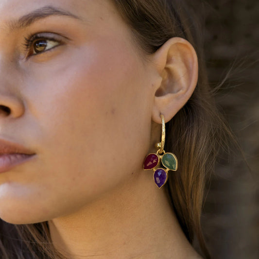 Pendientes Aros Coco Verde, Rubí y Morado (Desmontables)