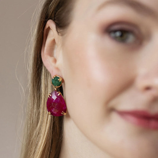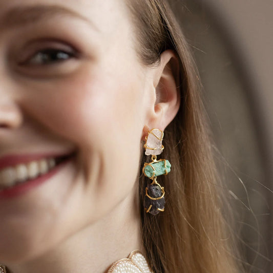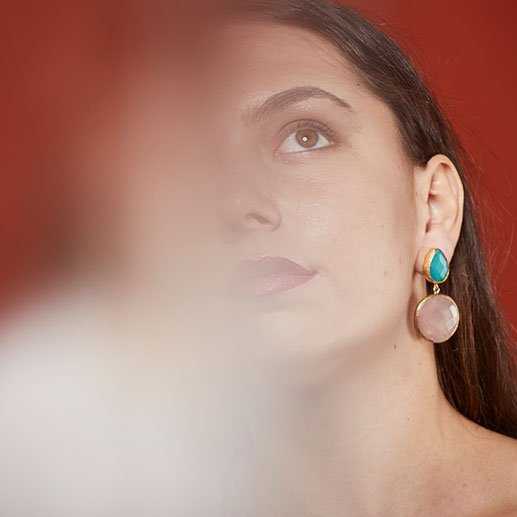 Pendientes Gisela Rosa Cuarzo, Verde agua amazonita y Morado amatista