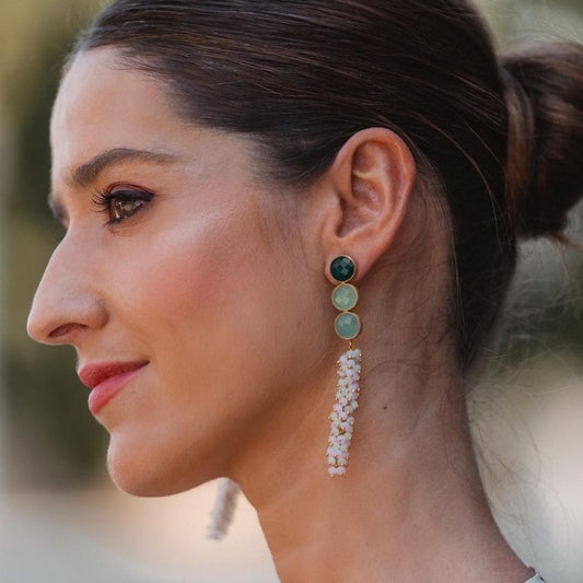 Pendientes Jubia Verde agua Amazonita, Rosa y Perla