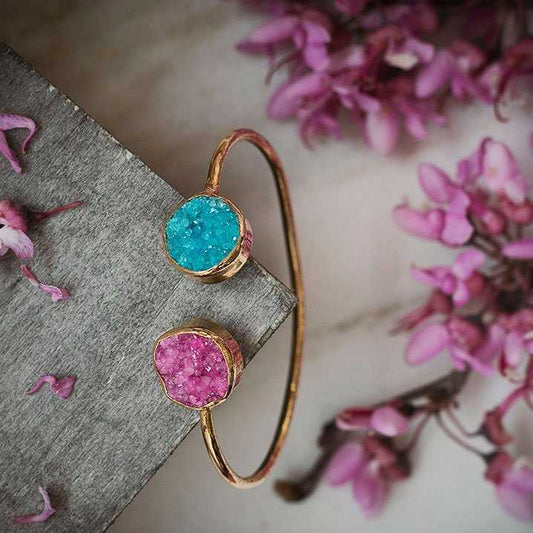 Brazalete Kivi Plata Azul turquesa y Fucsia mo