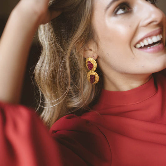Pendientes Elenis Ed. Limitada Rough Fucsia y Verde