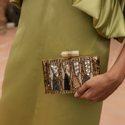 Clutch Deluxe Nelia Nácar, Verde agua y ámbar