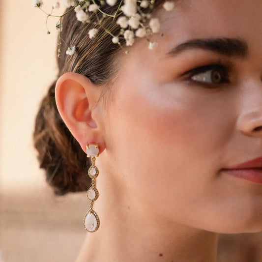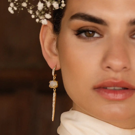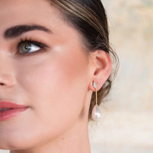 Pendientes Rubor Gota Piedra Lunar y Perla