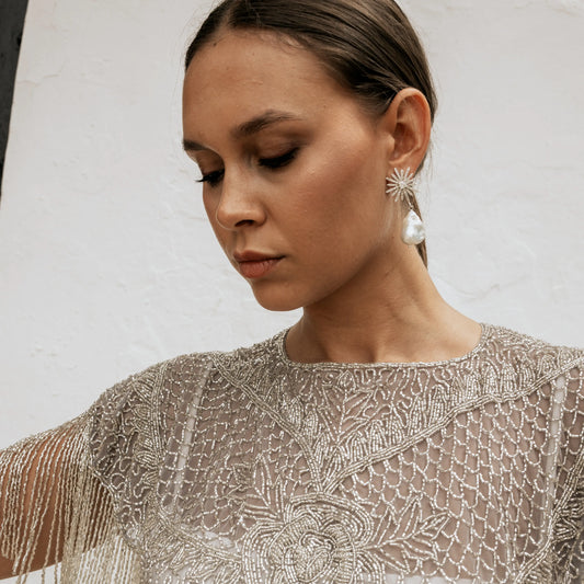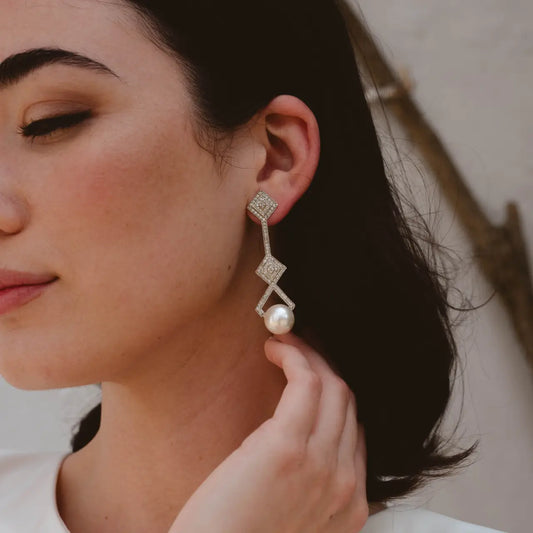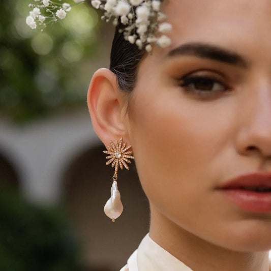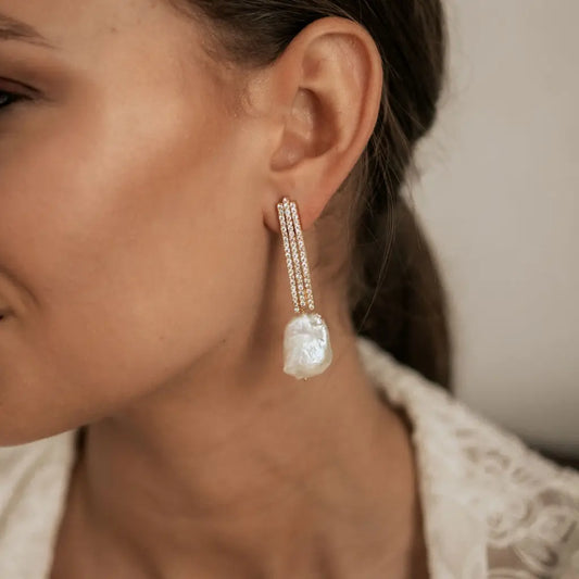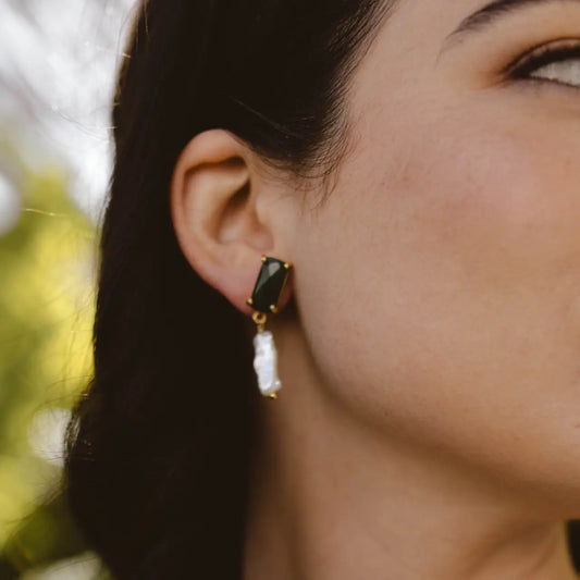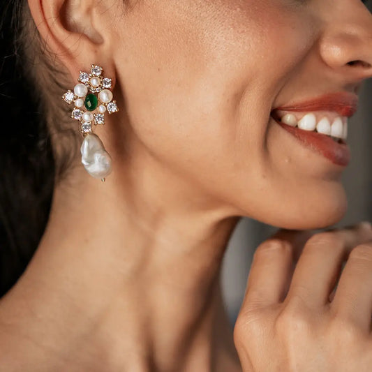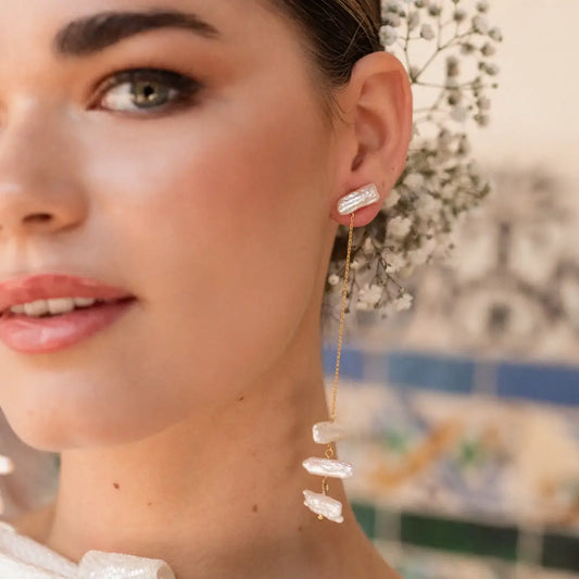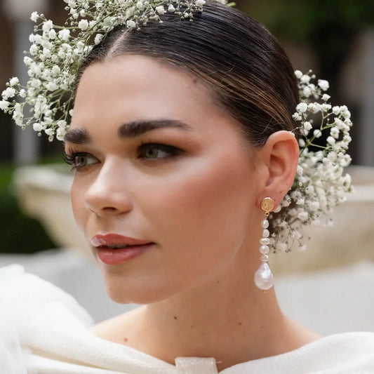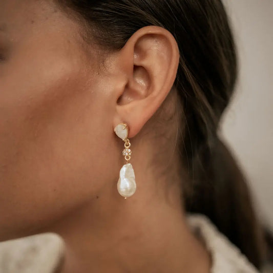 Pendientes Rubor Barroca Piedra Lunar y Perla