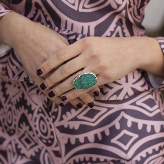 Anillo Galaxy Drusa Plata Verde