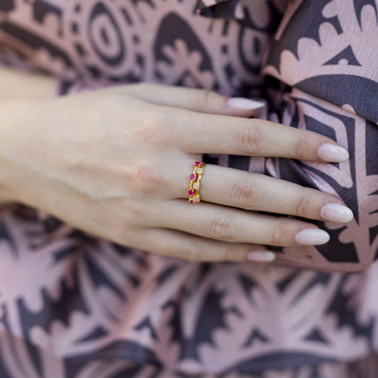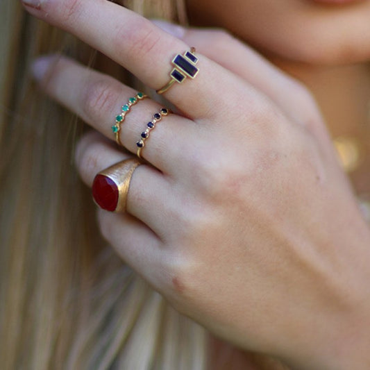 Anillo Mosaico Manson Amarillo, Azul oscuro, Rubí y Verde