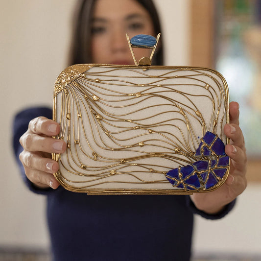 Clutch Deluxe Circular Manipur Piedras Azul y perlas
