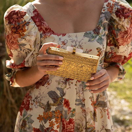 Clutch Deluxe Ajanta Dorado Cierre Rosa cuarzo