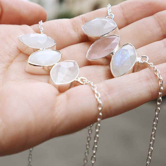 Colgante Ziba Plata Piedra Lunar y Rosa claro