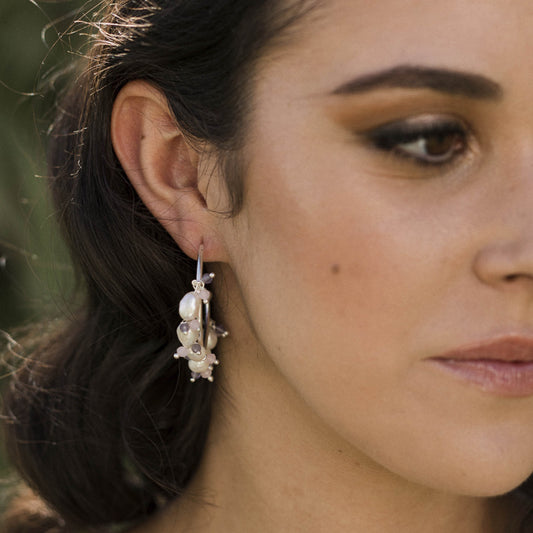Pendientes Aros Gobio Plata Perlas y Morados