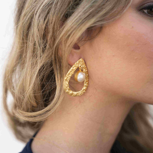Pendientes Rubor Barroca Piedra Lunar y Perla