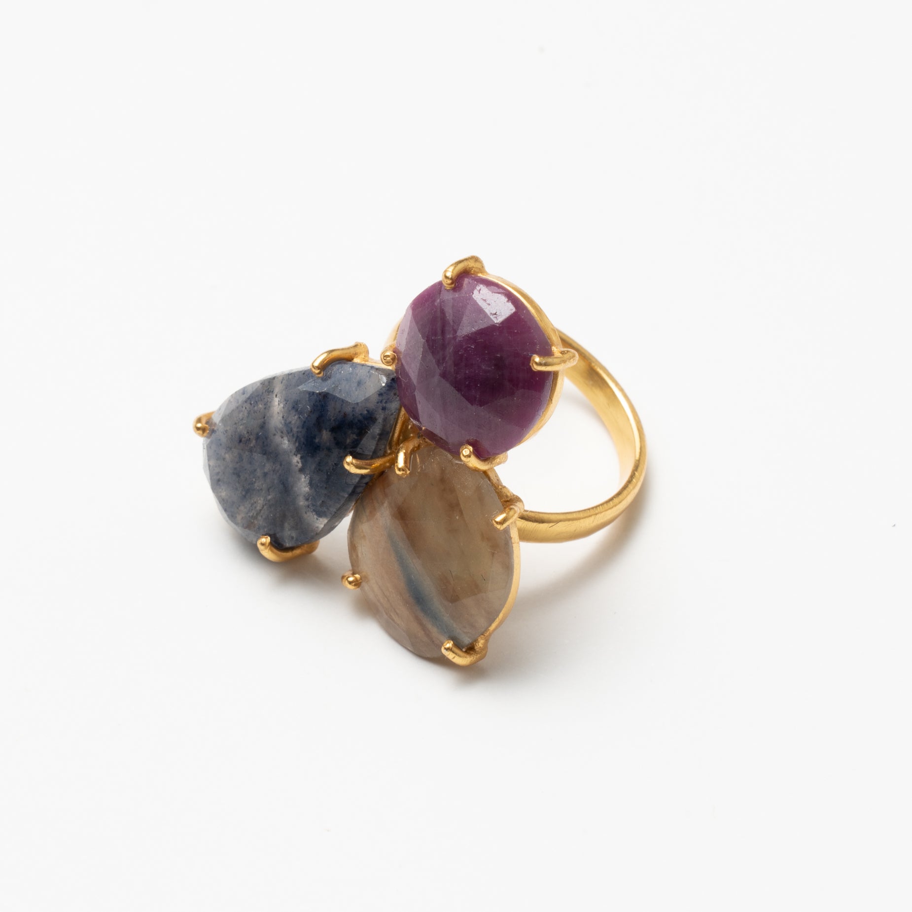 Spohn es un anillo formado por tres piedras naturales deluxe creando composiciones únicas.