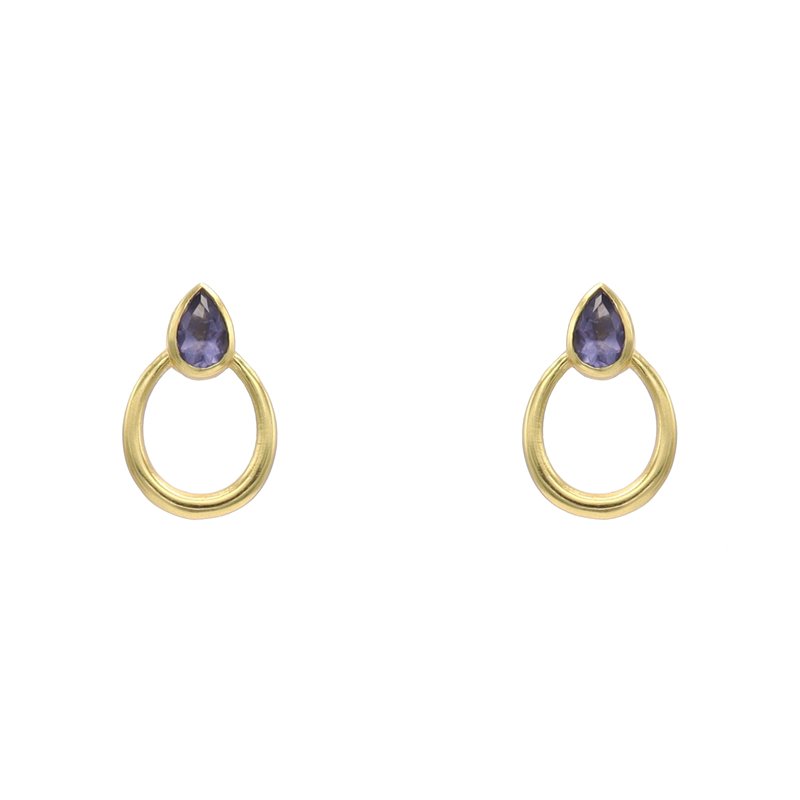 Pendientes que forman el perfil de una gota con una pequeña piedra en la parte superior. Este básico imprescindible para tu joyero presenta un diseño pequeño que es perfecto para quienes buscan añadir un toque de luminosidad sutil.