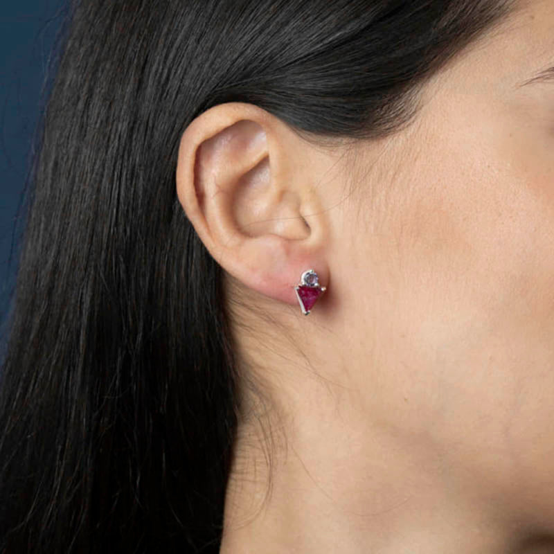 Dos piedras, una redonda sobre otra en forma de triángulo, componen estos encantadores mini pendientes. Un diseño delicado y versátil que agrega un toque de estilo con sutileza y elegancia.