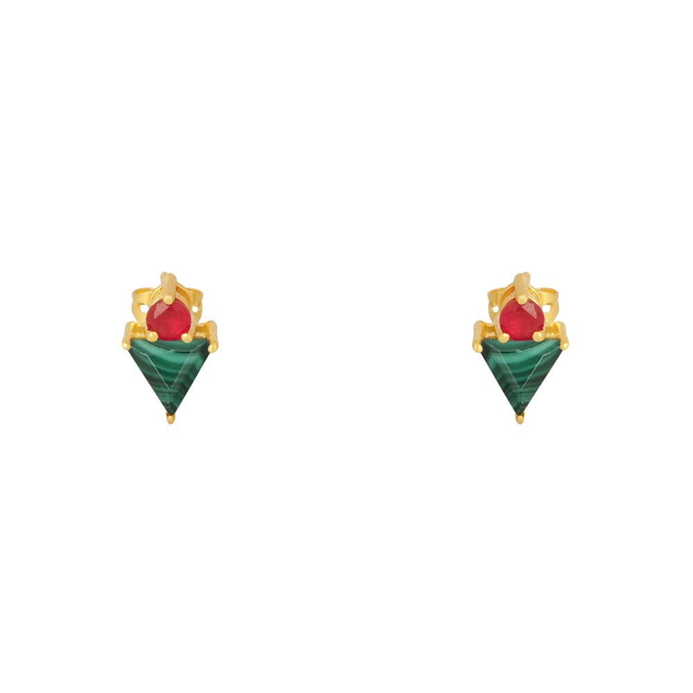 Dos piedras, una redonda sobre otra en forma de triángulo, componen estos encantadores mini pendientes. Un diseño delicado y versátil que agrega un toque de estilo con sutileza y elegancia.