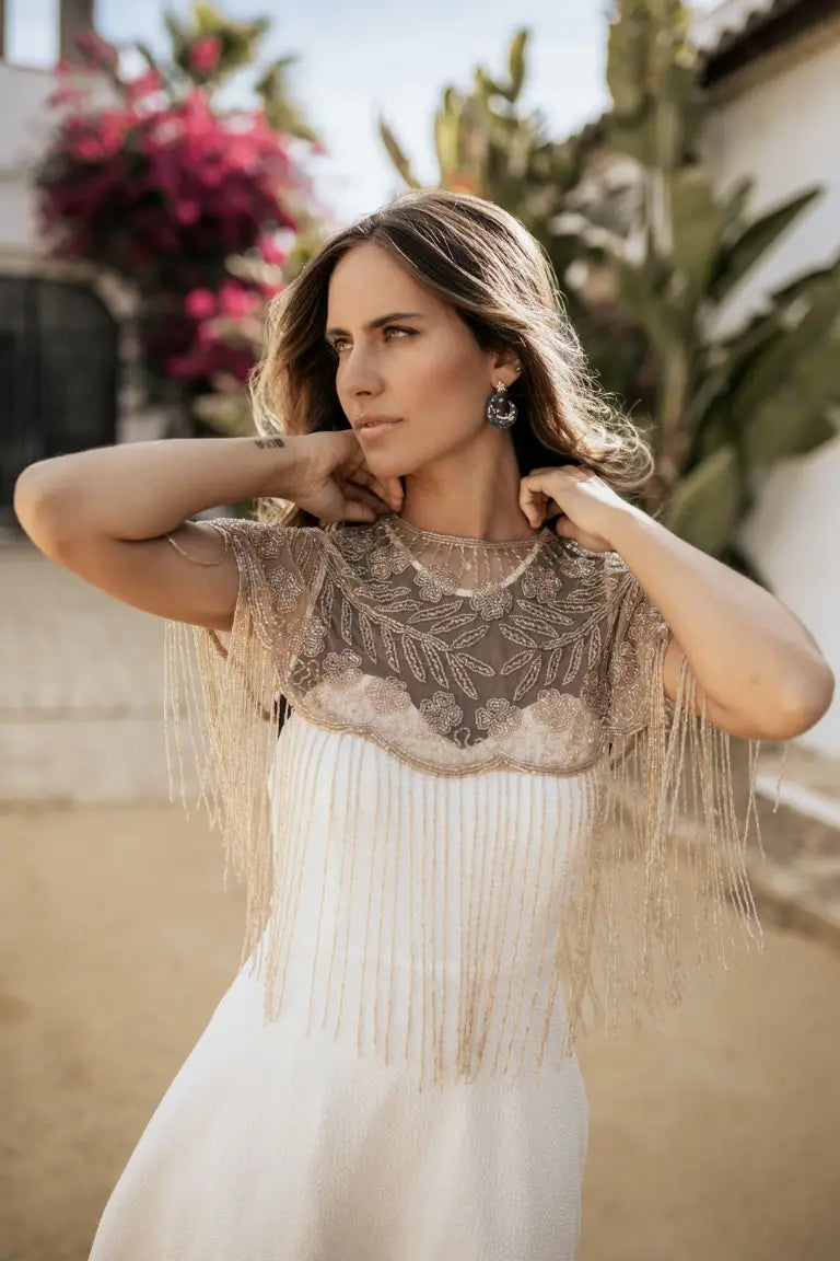 Diseñada para brillar en cada movimiento, la capa joya Dream envuelve la silueta con una caída ligera y elegante, realzando cualquier conjunto con un aire delicado y sofisticado.
