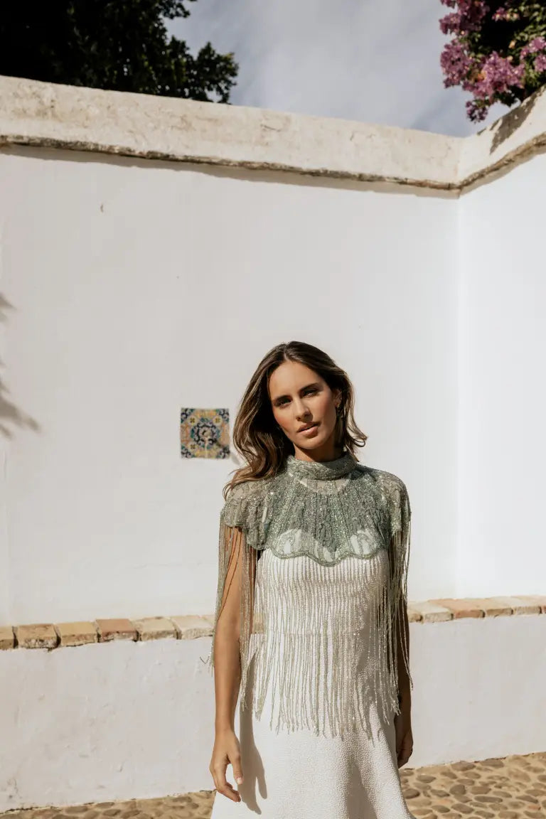 La capa joya Escénica es un complemento pensado para destacar con elegancia. Su caída impecable y silueta definida envuelven la figura con gracia, aportando movimiento y sofisticación a cada paso.