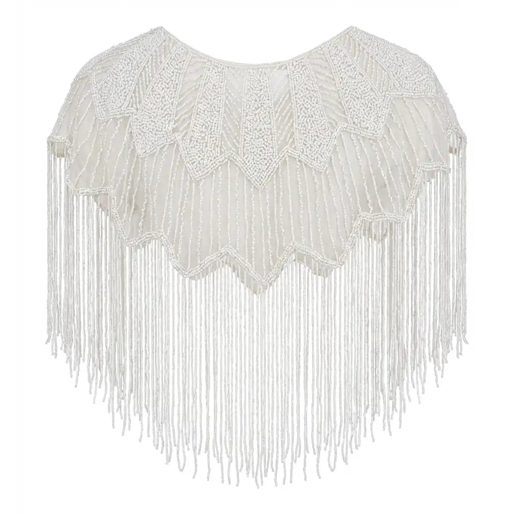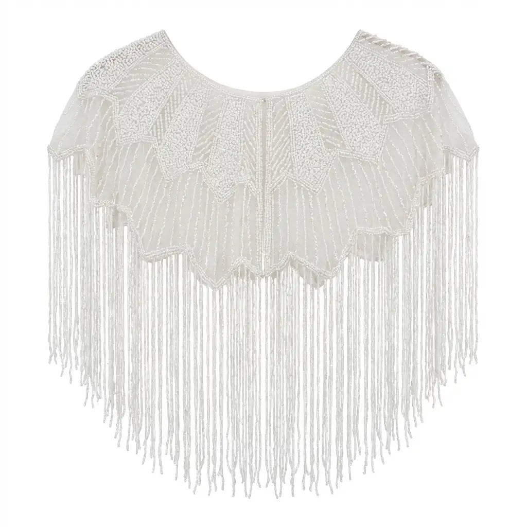 Descubre esta capa joya artesanal, hecha a mano en India con delicados abalorios que forman un diseño hexagonal que recuerda a elegantes alas desplegadas. Su textura ligera y fluida combina con la caída de sus flecos, creando un movimiento hipnótico que envuelve el cuerpo con sofisticación y dinamismo. La sensación al llevarla es de pura feminidad y estilo, perfecta para realzar cualquier look aportando un toque único y artesanal.