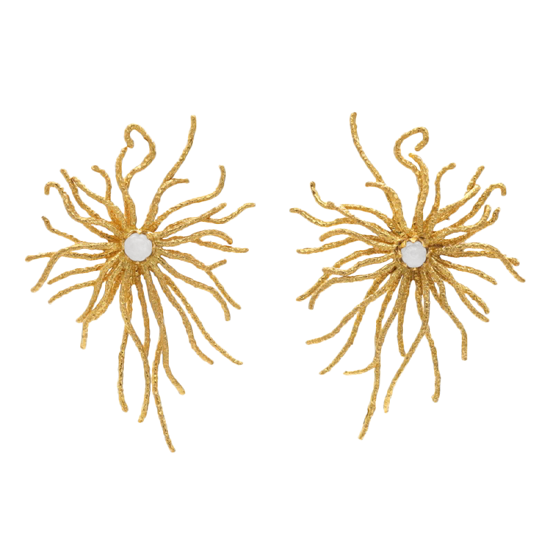 Pendientes con numerosas ramificaciones y una piedra en su centro.