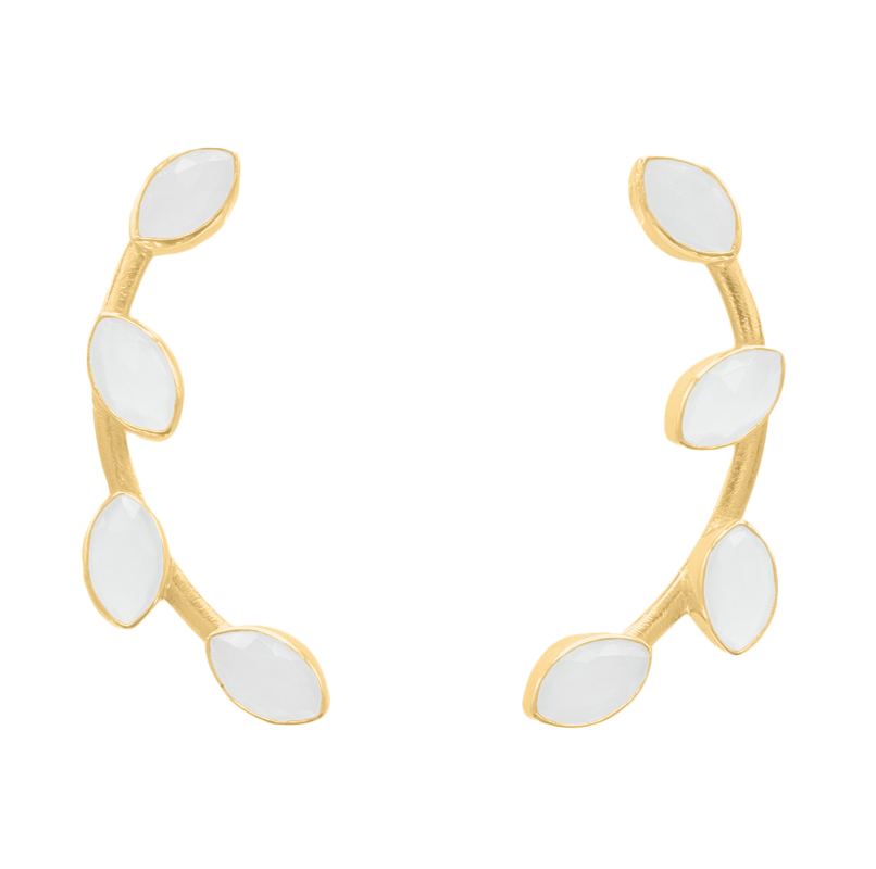 Pendientes en forma de delicada rama, compuesta por un arco dorado y pequeñas piedras de forma ovalada imitando hojas.