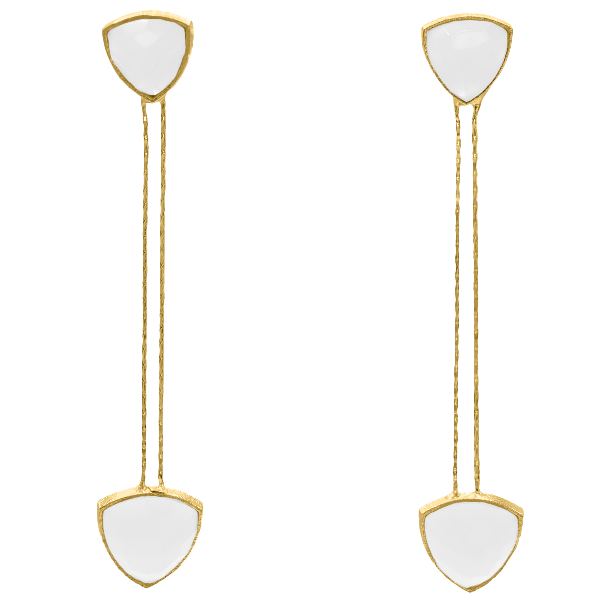 Pendientes con dos piedras en forma triangular unidas por una cadena. Estas piedras, dispuestas en un diseño único, aportan movimiento y color a tu look. La cadena que las une permite que las piedras se balanceen delicadamente, añadiendo un toque de dinamismo a tu estilo. Además, la forma triangular de las piedras crea un efecto visual interesante y moderno. Estos pendientes son ideales para añadir un toque de sofisticación y estilo a cualquier conjunto, ya sea casual o formal. Serán el complemento perfecto para destacar tu personalidad con elegancia y originalidad.