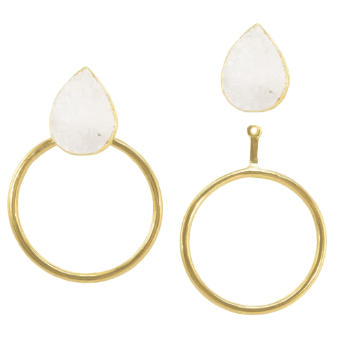 Los originales pendientes de piedra natural en forma de lágrima y aro frontal son una opción única y versátil para complementar tu estilo. La capacidad de desmontarlos y llevar la gota sola o con el aro ofrece una flexibilidad excepcional para adaptarse a diferentes ocasiones y preferencias de estilo.