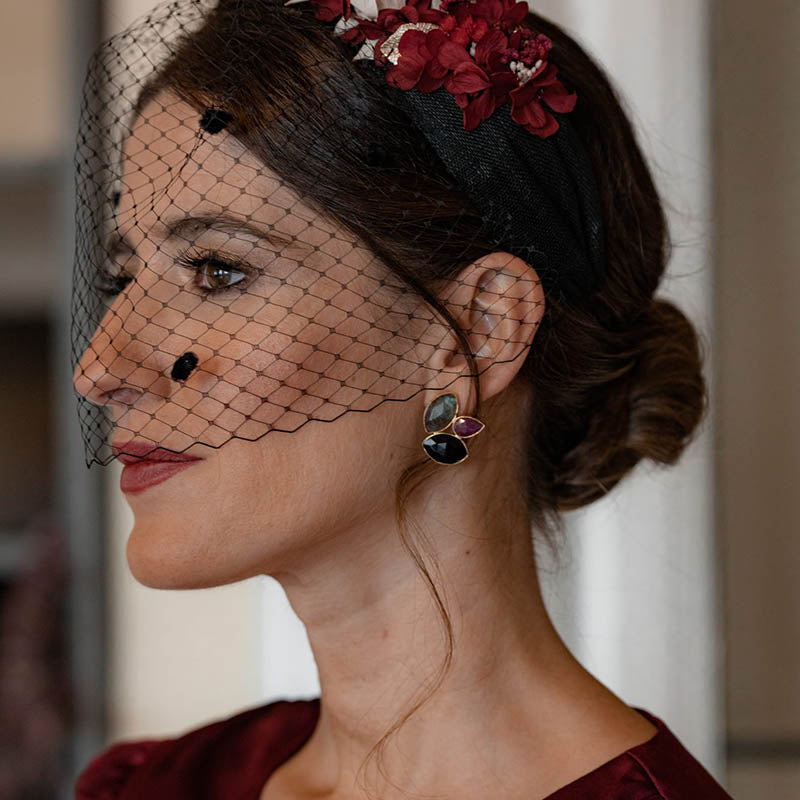 Pendientes formados por tres piedras, dos marquesas grandes y una en forma de gota pequeña. Un pendiente muy ligero y cómodo a la par que original.