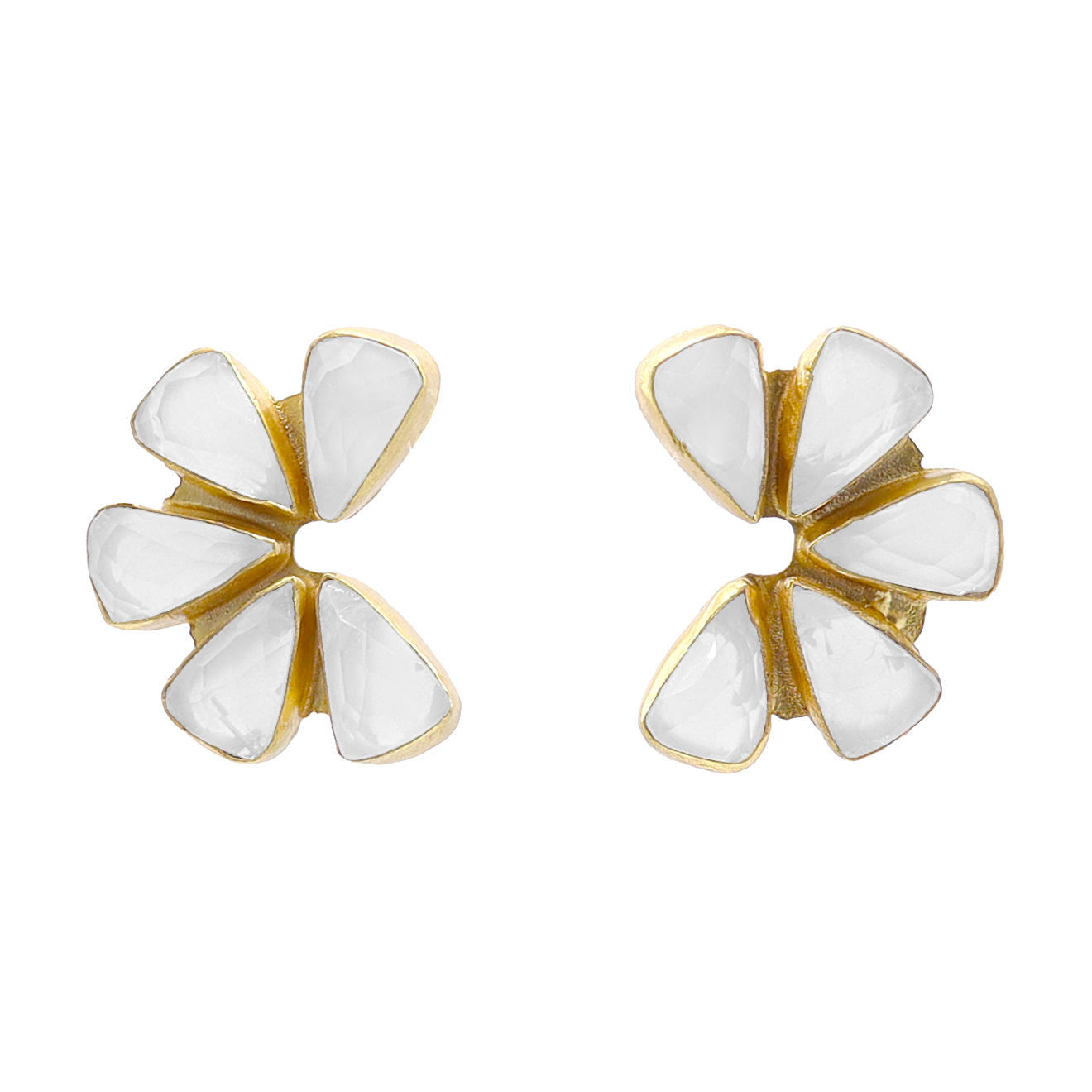 Pendientes con cinco piedras dispuestas en forma de triángulo, creando un círculo incompleto. Su diseño original y versátil se adapta tanto al día a día como a ocasiones especiales.