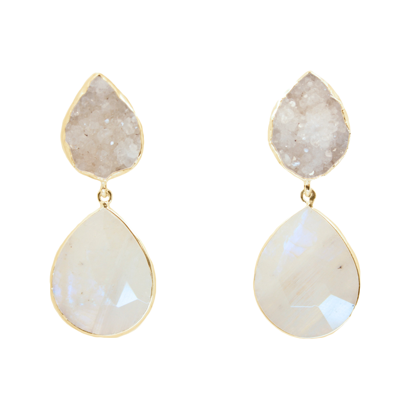 Pendientes artesanales que fusionan la destreza manual con la belleza natural. Dos piedras en forma de gota se juntan, creando una obra única que refleja la artesanía excepcional y añade un toque de encanto a tu estilo.