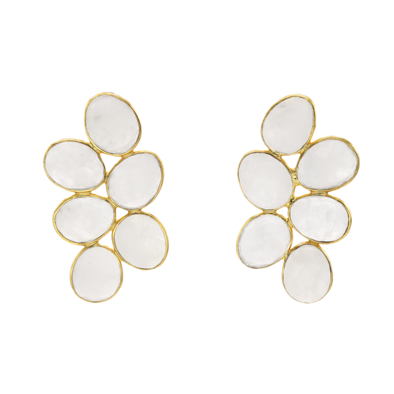 Seis piedras en forma de óvalo se entrelazan en diferentes orientaciones, creando unos pendientes muy ligeros y vistosos. Un diseño único que destaca por su elegancia y originalidad, resaltando con gracia en cualquier ocasión.