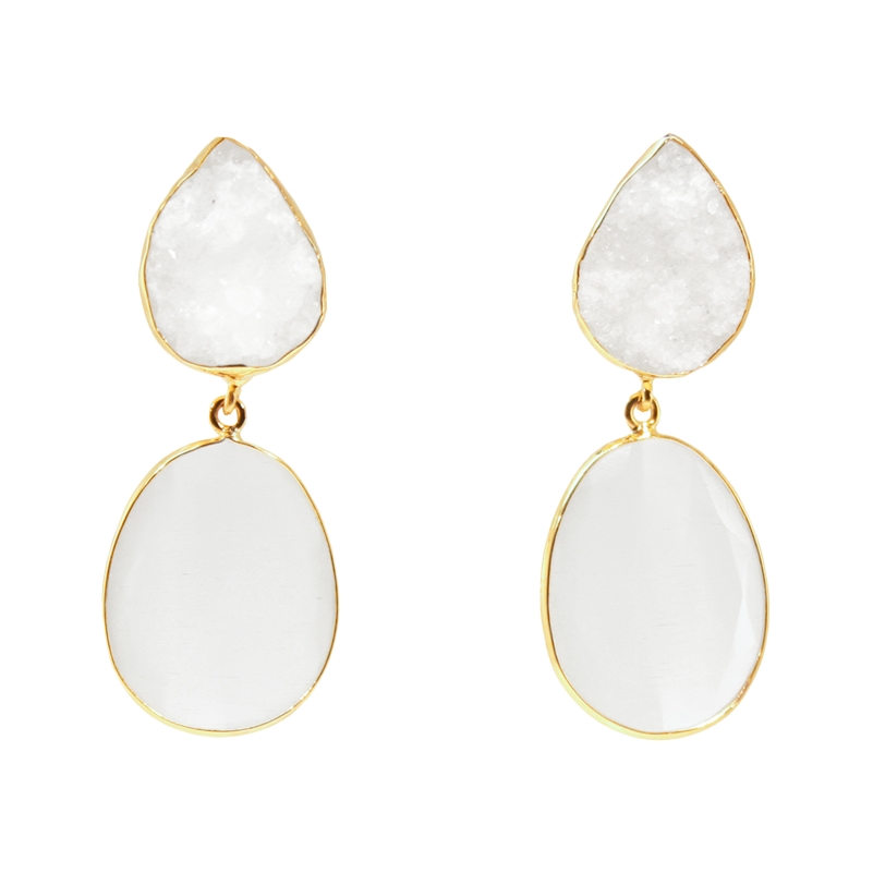 Realizados con piedras, la superior tiene forma de gota y la inferior es ovalada. Estos pendientes artesanales destacan por su diseño único, aportando un toque de distinción y elegancia a tu estilo con gracia y encanto.