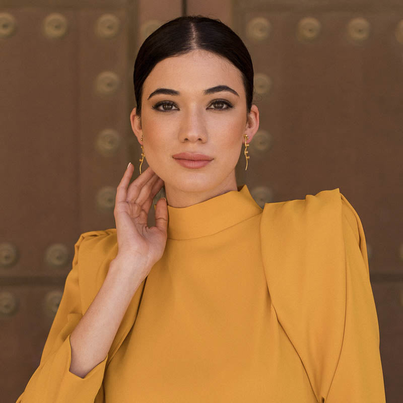 Una expresión de elegancia vertical, estos pendientes destacan con curvas suaves que albergan pequeñas piedras a lo largo de su estructura. Un diseño moderno y femenino que añade un toque distintivo. Eleva tu look con estos pendientes encantadores y versátiles