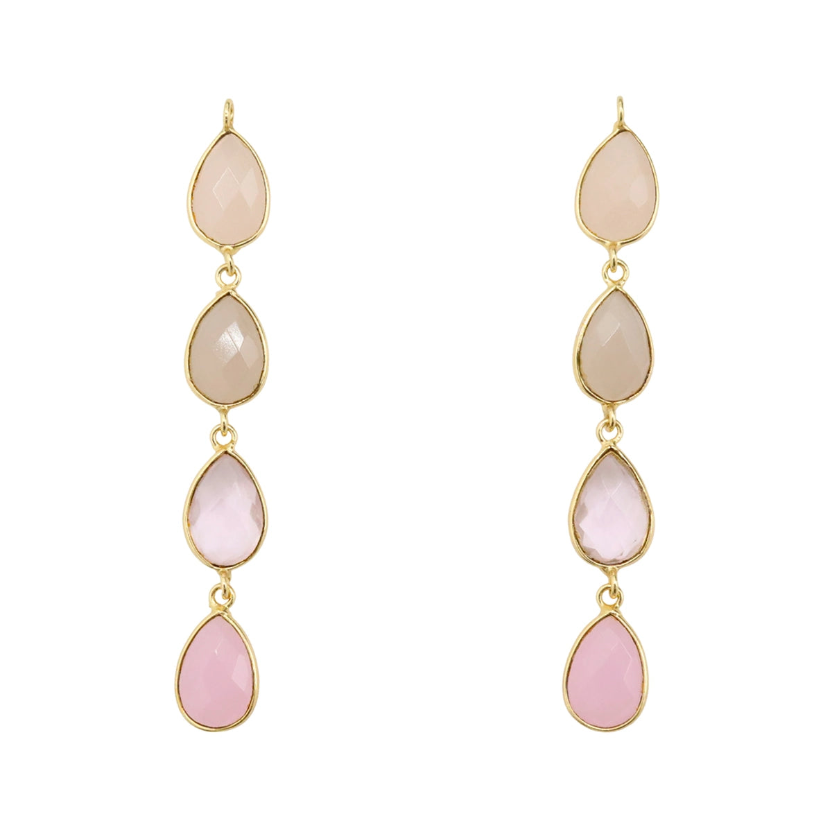 Estas delicadas piezas destacan por su composición armónica de piedras naturales en forma de lágrima, unidas por finas piezas doradas que crean un movimiento sutil y elegante. Cada piedra refleja la luz con un brillo suave, aportando frescura y vitalidad a cualquier combinación.