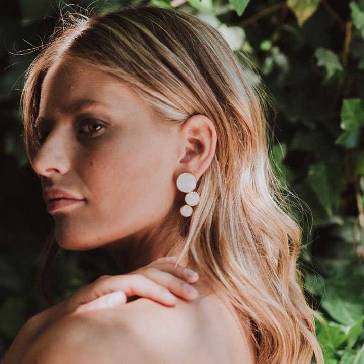 Pendientes que presentan tres piedras circulares de diferentes tamaños. Este diseño único resalta la belleza natural y la variedad de formas, creando un accesorio que captura la atención con su encanto y originalidad.
