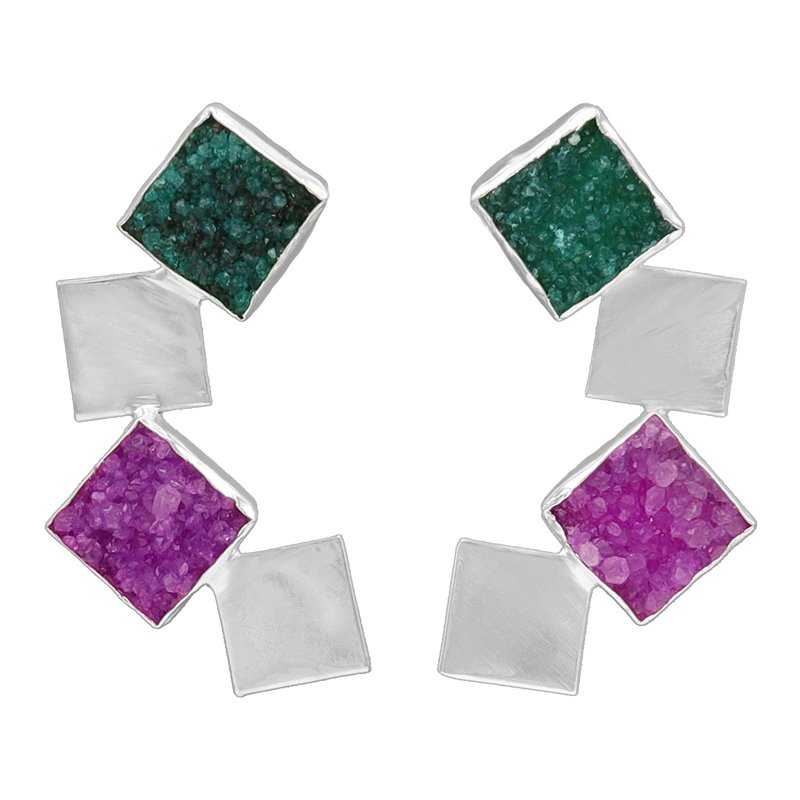 Pendientes con piedras en forma de cuadrado que se alternan con cuadrados en metal. Un modelo de estilo geométrico y de lineas limpias perfecto para quien quiera apostar por algo más original. Su forma de media luna enmarcará tu rostro y te aportará mucha luz.