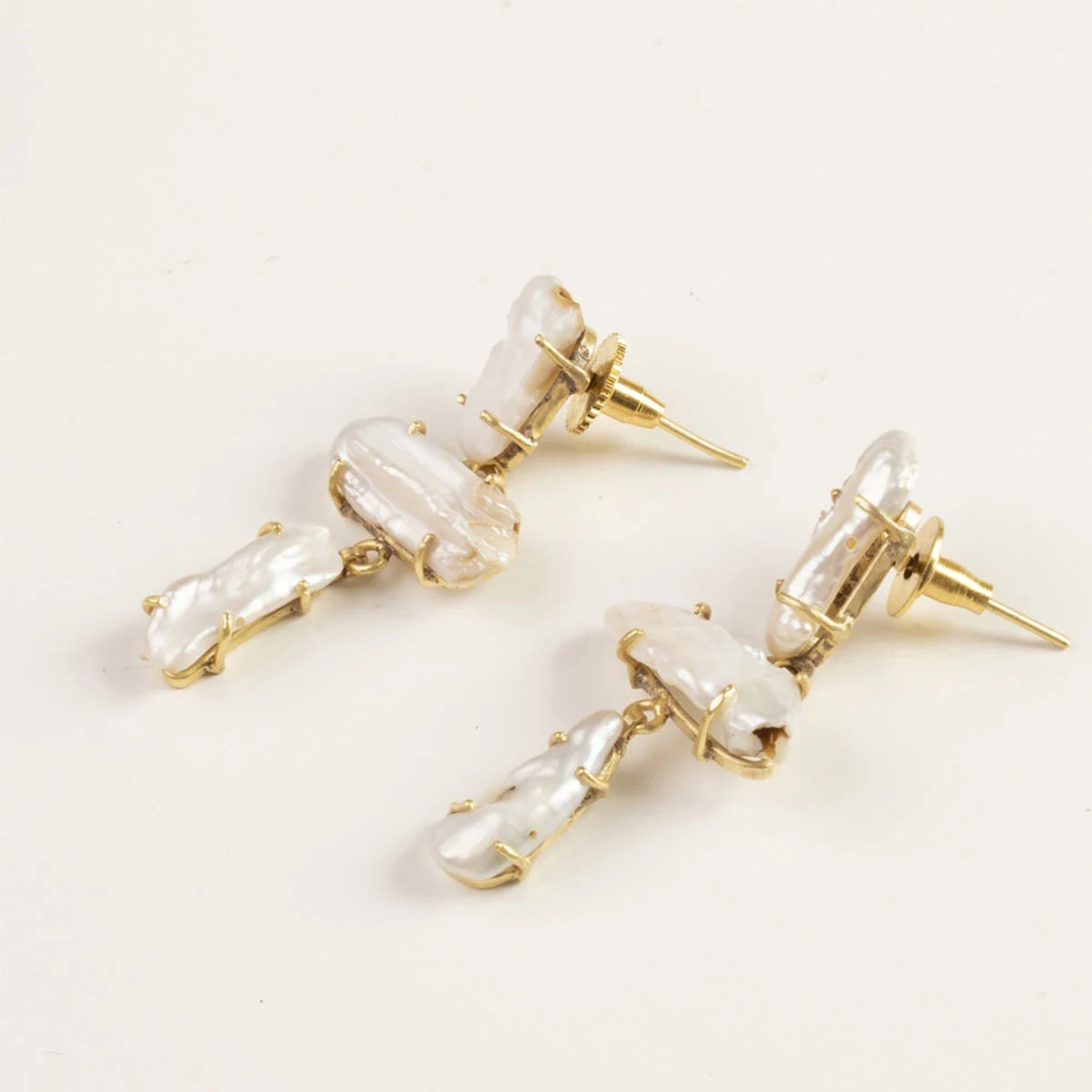 Pendiente móvil con tres piedras. Este diseño dinámico y elegante resalta la belleza de las piedras en movimiento, creando un accesorio que añade un toque de sofisticación y originalidad a tu estilo.