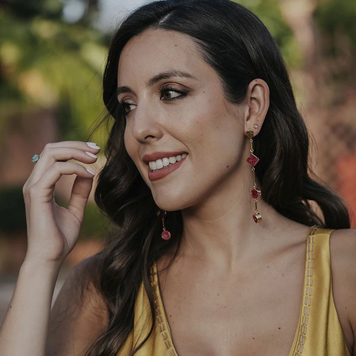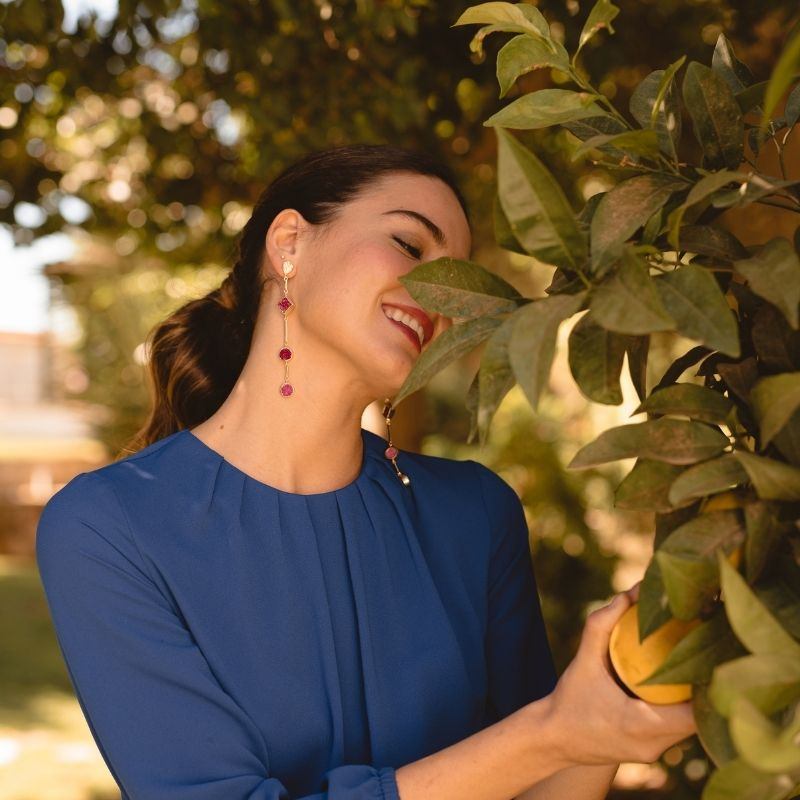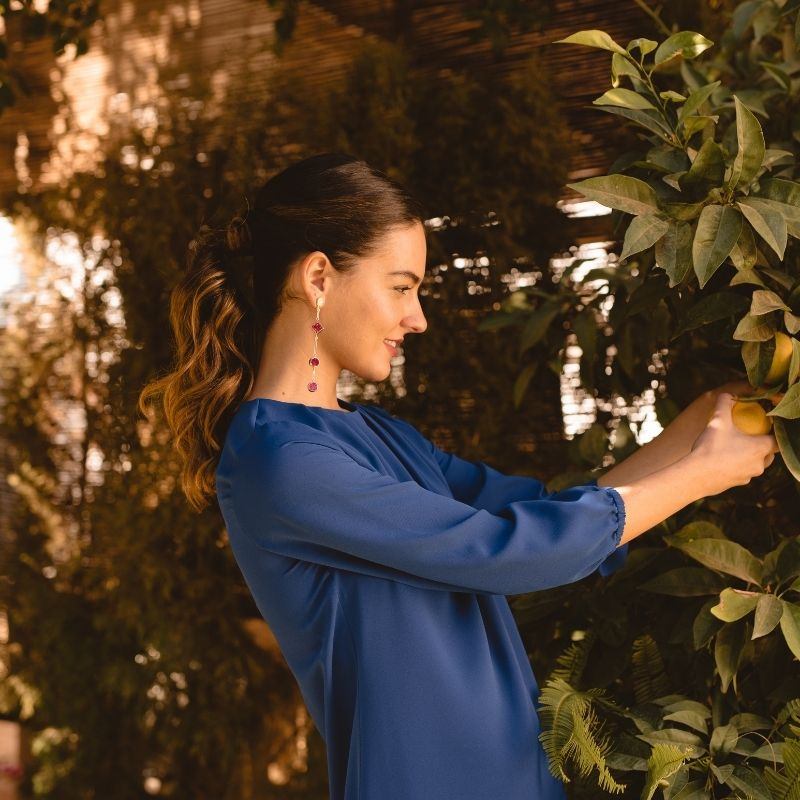Un pendiente de líneas minimalistas perfecto para quien quiera aportar color de forma original y elegante a la vez.