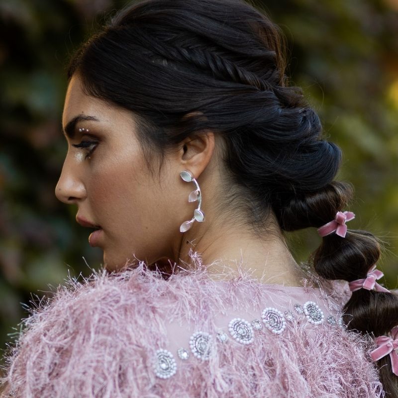 Pendientes en forma de delicada rama, compuesta por un arco y pequeñas piedras de forma ovalada imitando hojas. Este diseño evoca la naturaleza con un toque de elegancia, creando un accesorio que resalta por su sutileza y originalidad.