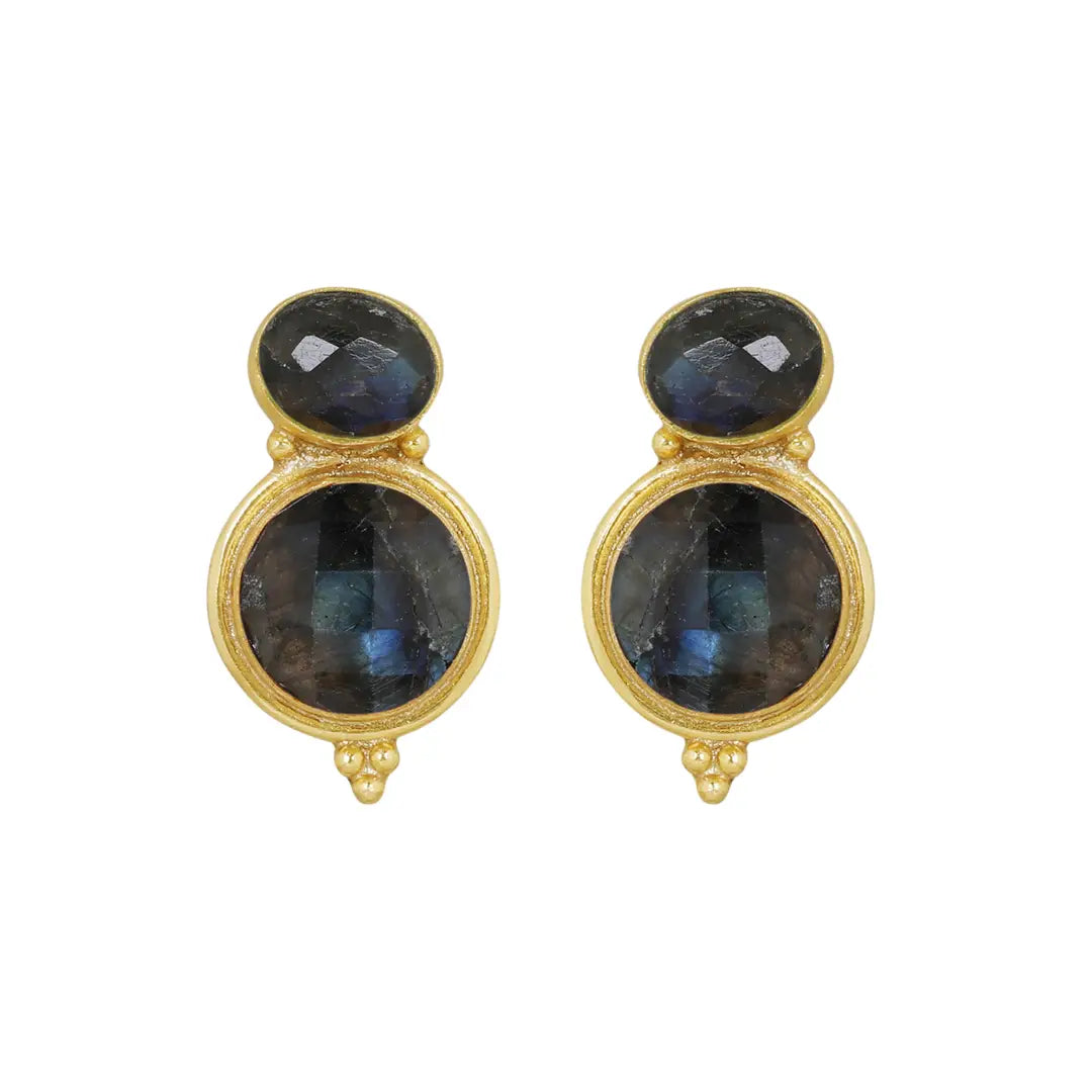 Pendientes realizados con piedras, presentando una piedra ovalada pequeña en la parte superior seguida por una piedra circular. Este diseño original y especial resalta la combinación única de formas, creando un accesorio que captura la atención con su singularidad y elegancia.
