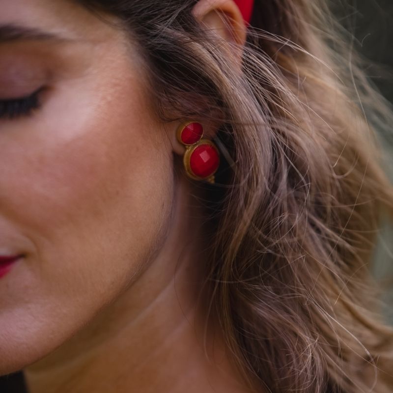 Pendientes realizados con piedras, presentando una piedra ovalada pequeña en la parte superior seguida por una piedra circular. Este diseño original y especial resalta la combinación única de formas, creando un accesorio que captura la atención con su singularidad y elegancia.