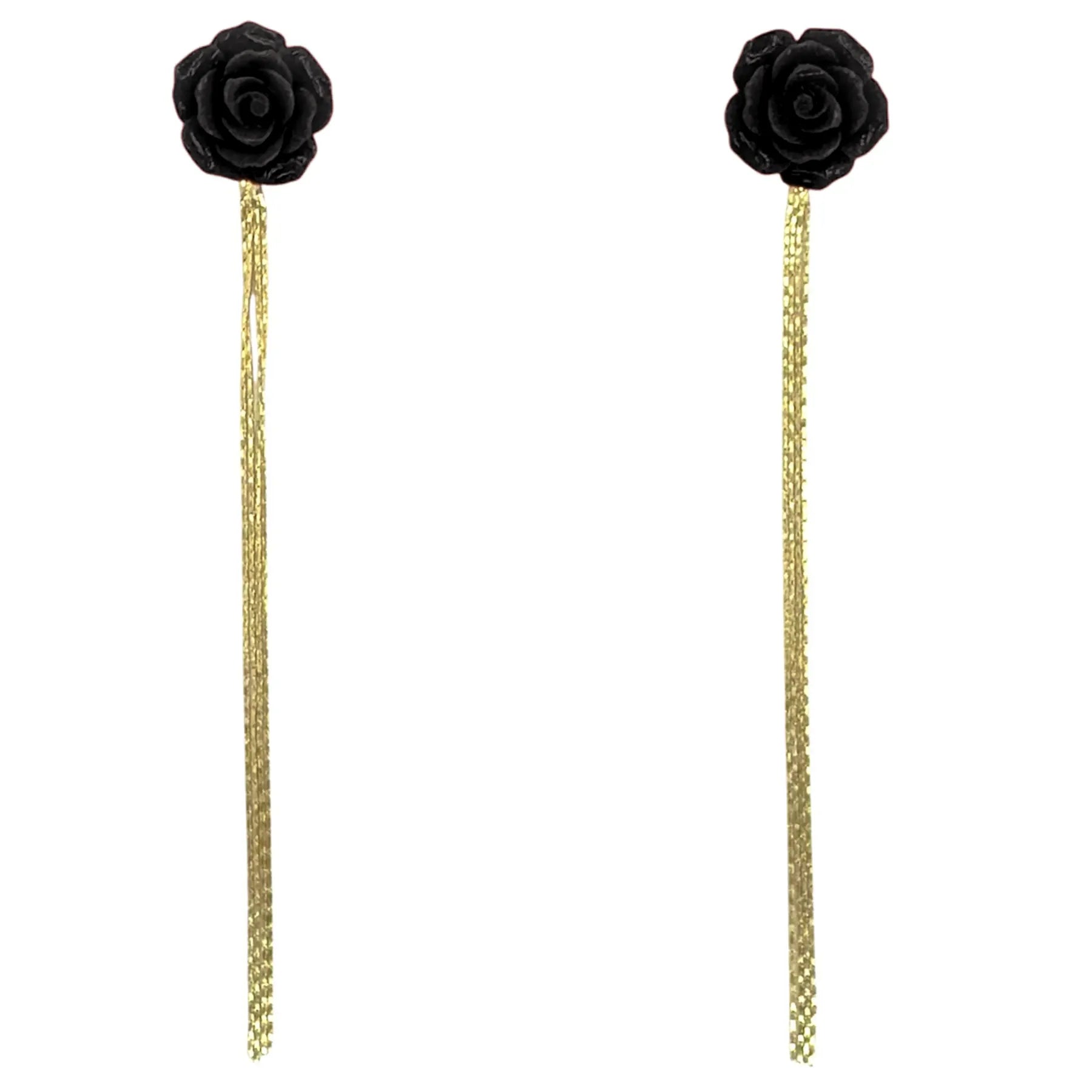 Pendientes Cadenza Flor Flecos Negro (desmontables)