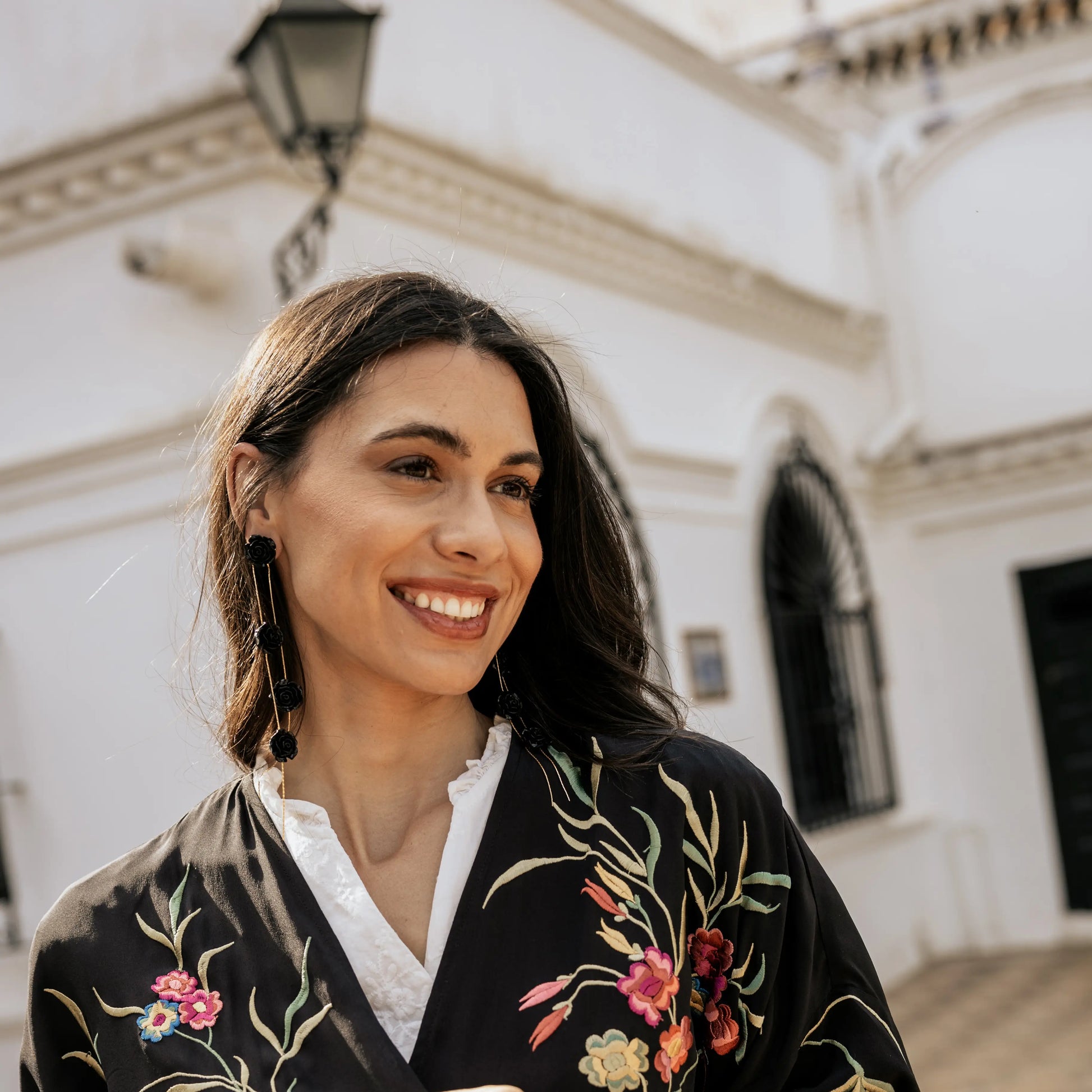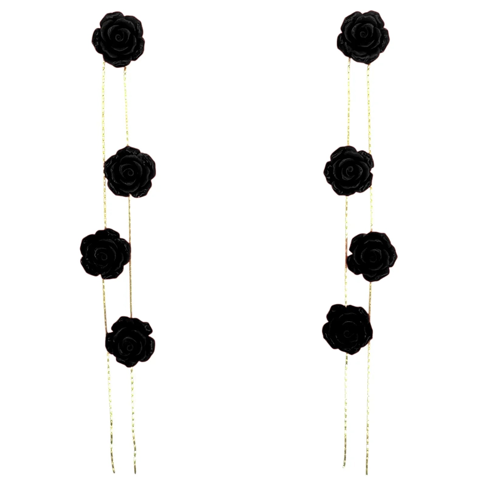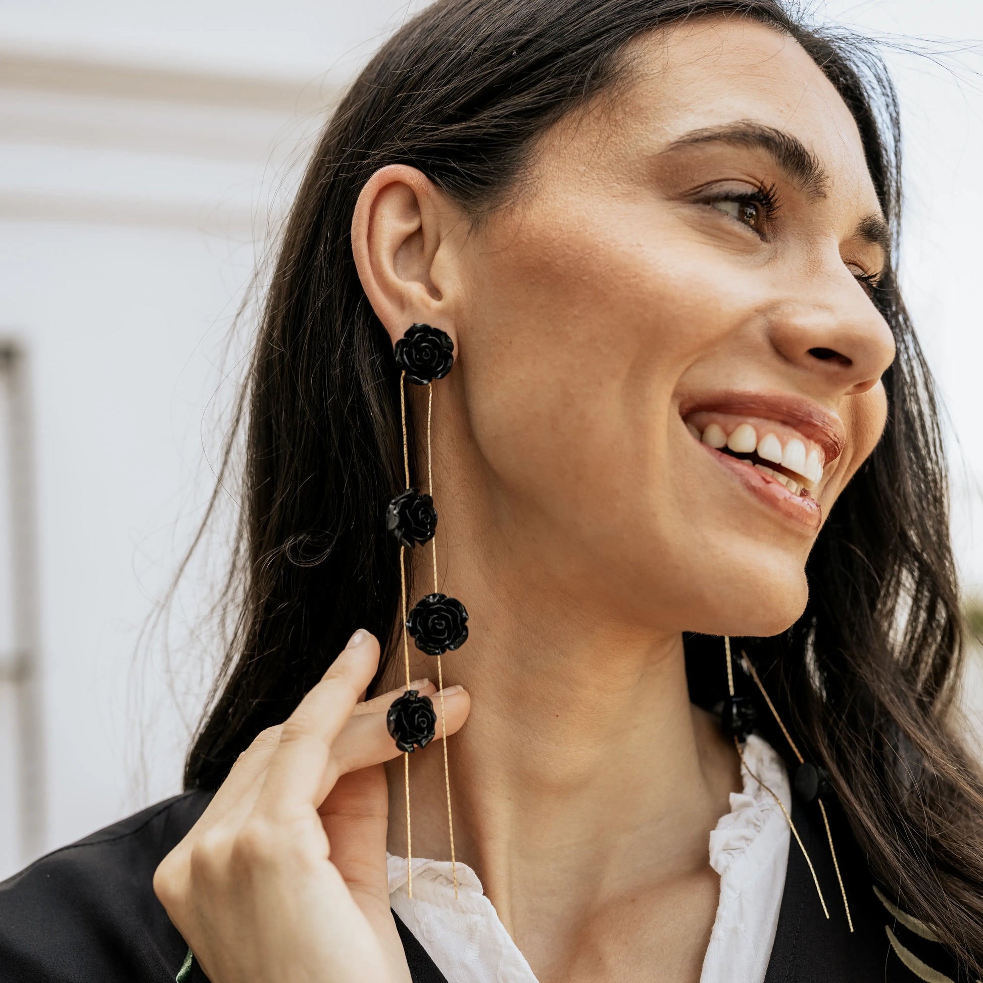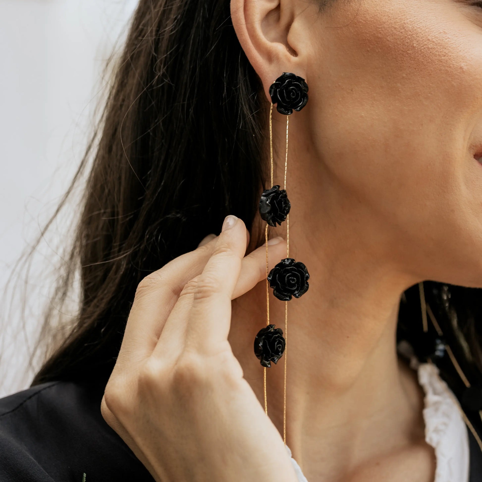 Estos pendientes destacan por su diseño floral único. Una rosa en relieve se adorna con dos cadenas delicadas: una lleva una rosa en el centro, mientras que la otra presenta dos rosas. Este juego de flores y cadenas aporta un toque elegante y femenino, creando un balance perfecto entre suavidad y sofisticación. Perfectos para añadir un toque de estilo y frescura a cualquier look.