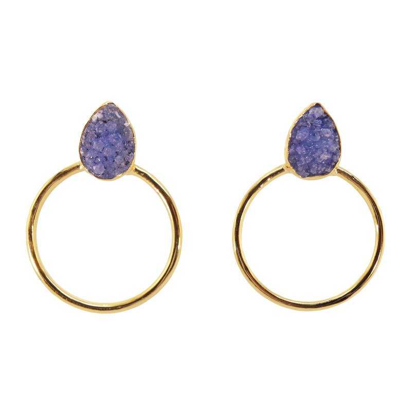 Originales pendientes de piedra en forma de lágrima con un giro innovador en los clásicos aros, ahora colocados de manera frontal. El resultado es una pieza excelente, delicada y elegante, que reinventa la esencia clásica con un toque moderno y distintivo.