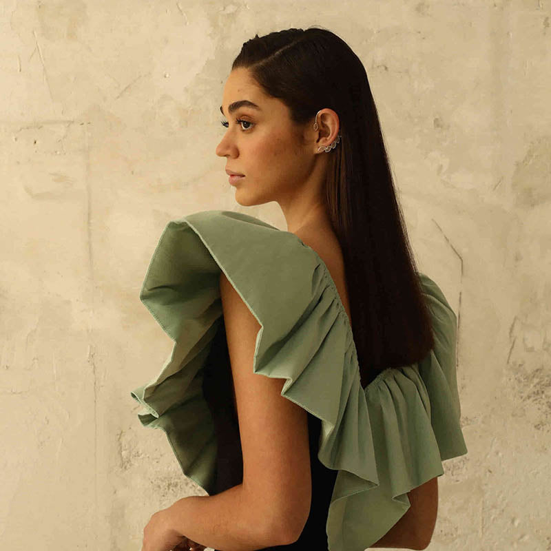 5 piedras recorren la oreja para terminar con otra piedra que abraza la hélice de la oreja para fijar su forma. Es ajustable.