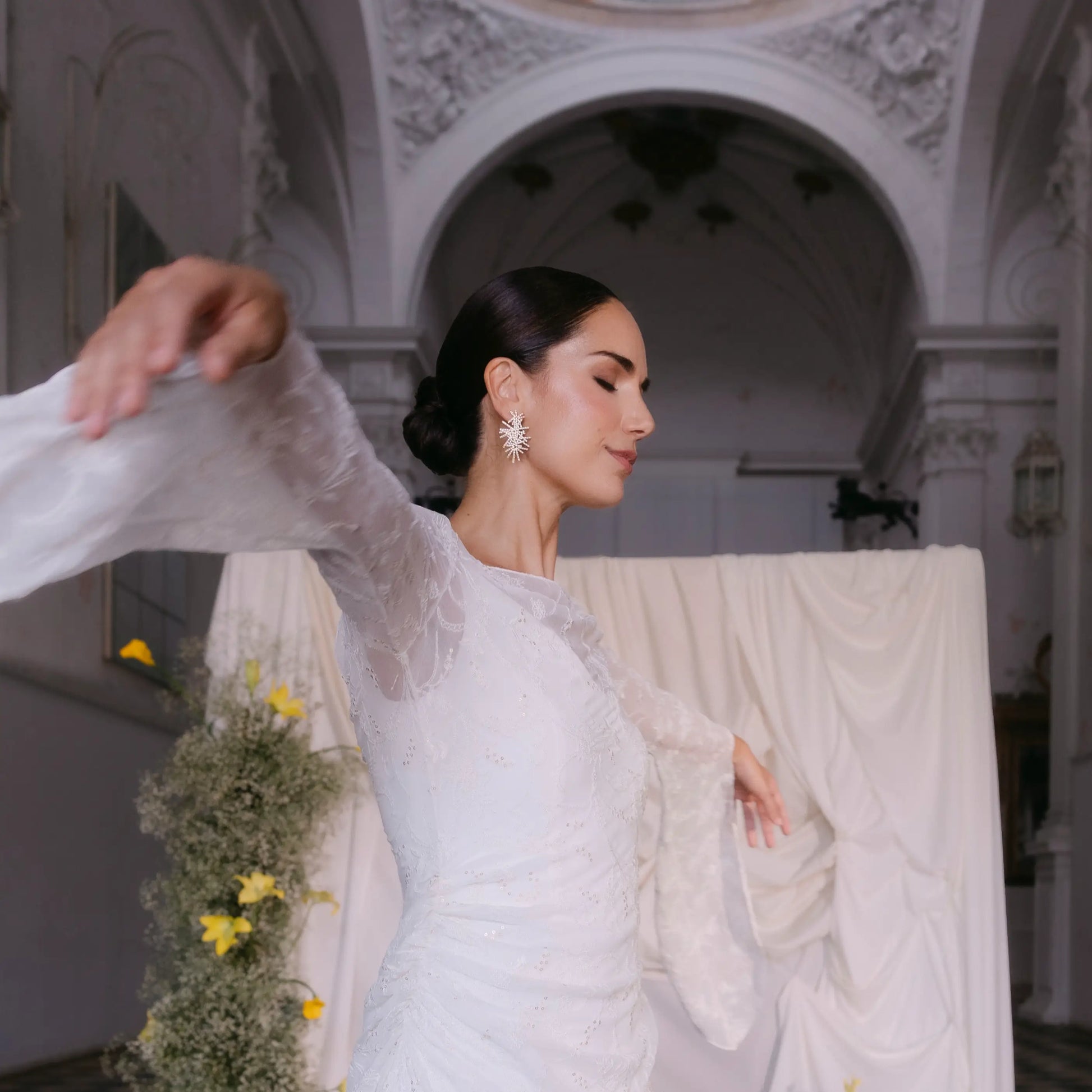 ¿Te casas y estás buscando los pendientes para tu boda? Sigue leyendo porque puede que estemos ante tus próximos pendientes de novia. Que te acompañarán ese día y después en un montón de ocasiones más. Pendientes Euforia – Brillo escultórico que no pasa desapercibido Tipo de pendiente: Maxi y estructural Estilo: Glamuroso, contemporáneo, impactante Perfectos para: Novias con vestidos minimalistas que buscan un toque rompedor Escotes halter, barco o asimétricos Rostros alargados o con estructura marcada Peinados pulidos: moño bajo o coleta alta Los Pendientes Euforia son una explosión de brillo y personalidad. Su diseño estelar y su volumen crean una joya escultórica que transforma cualquier look nupcial. Pensados para novias valientes, modernas y con ganas de deslumbrar. 👰 Consejo de estilo: Son perfectos para darle todo el protagonismo al rostro. Combínalos con maquillaje sofisticado y prescinde de collar para no recargar el conjunto.