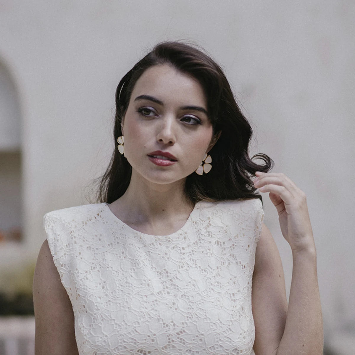 ¿Te casas y estás buscando los pendientes para tu boda? Sigue leyendo porque puede que estemos ante tus próximos pendientes de novia. Que te acompañarán ese día y despúes en un montón de ocasiones más. Pendientes Flor Batres– Geometría que florece Tipo de pendiente: Mediano, de botón Estilo: Floral, moderno, estructural Perfectos para: Novias con vestidos minimalistas que buscan una joya con carácter Looks de novia contemporánea o con inspiración arquitectónica Bodas civiles o estilismos de segunda puesta Peinados sueltos o recogidos pulidos que dejen al descubierto la oreja Los Pendientes Flor Batres reinventan la flor tradicional con una silueta geométrica y poderosa. Cada pétalo triangular se une en un equilibrio perfecto, creando una flor que transmite diseño, delicadeza y decisión. ✨ Consejo de estilo: Ideales para combinar con vestidos de líneas rectas, escotes asimétricos o tejidos lisos. También funcionan como pieza estrella si no vas a llevar más joyas.